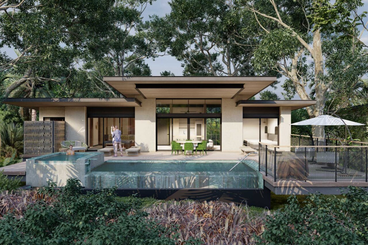 Cada villa tiene 236 metros cuadrados (más de 2500 pies cuadrados) y ofrece la distribución ideal para familias y parejas: dos amplios dormitorios, una cocineta con refrigeradora, máquina de café, hervidor de agua eléctrico y vajilla básica; además de amplias áreas de estar interiores y exteriores. Piscina privada, jacuzzi y una amplia terraza rodeada de jardines bien cuidados.